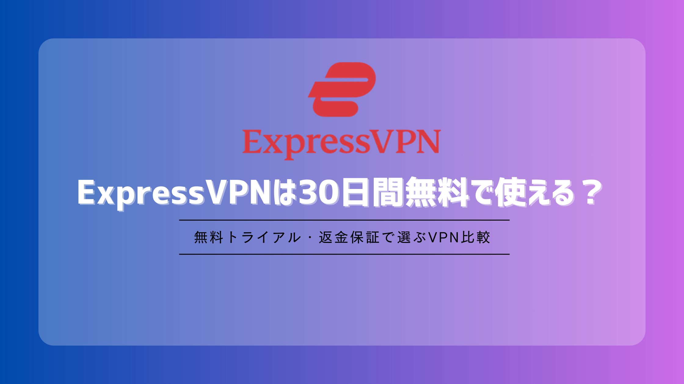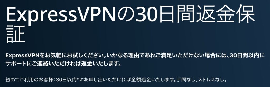 ExpressVPNは「30日間の全額返金保証」を使えば、実質無料でフル機能を体験できます。