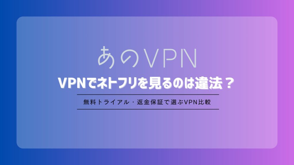 「VPNでネトフリ見てみたいけど、違法だったらどうしよう…」という不安を整理するための記事です。 Netflixをもっと自由に楽しみたいと思ってVPNを使う人が増えています。しかし、「これって違法じゃないの?」「アカウント停止になったりしない?」と不安...
