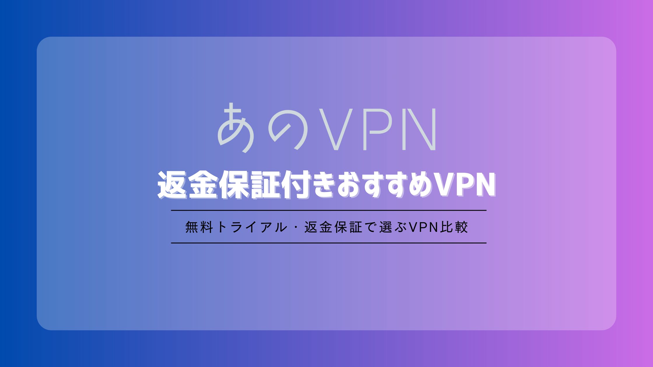 本格的に比較検討したい場合は、返金保証付きVPNがおすすめです。