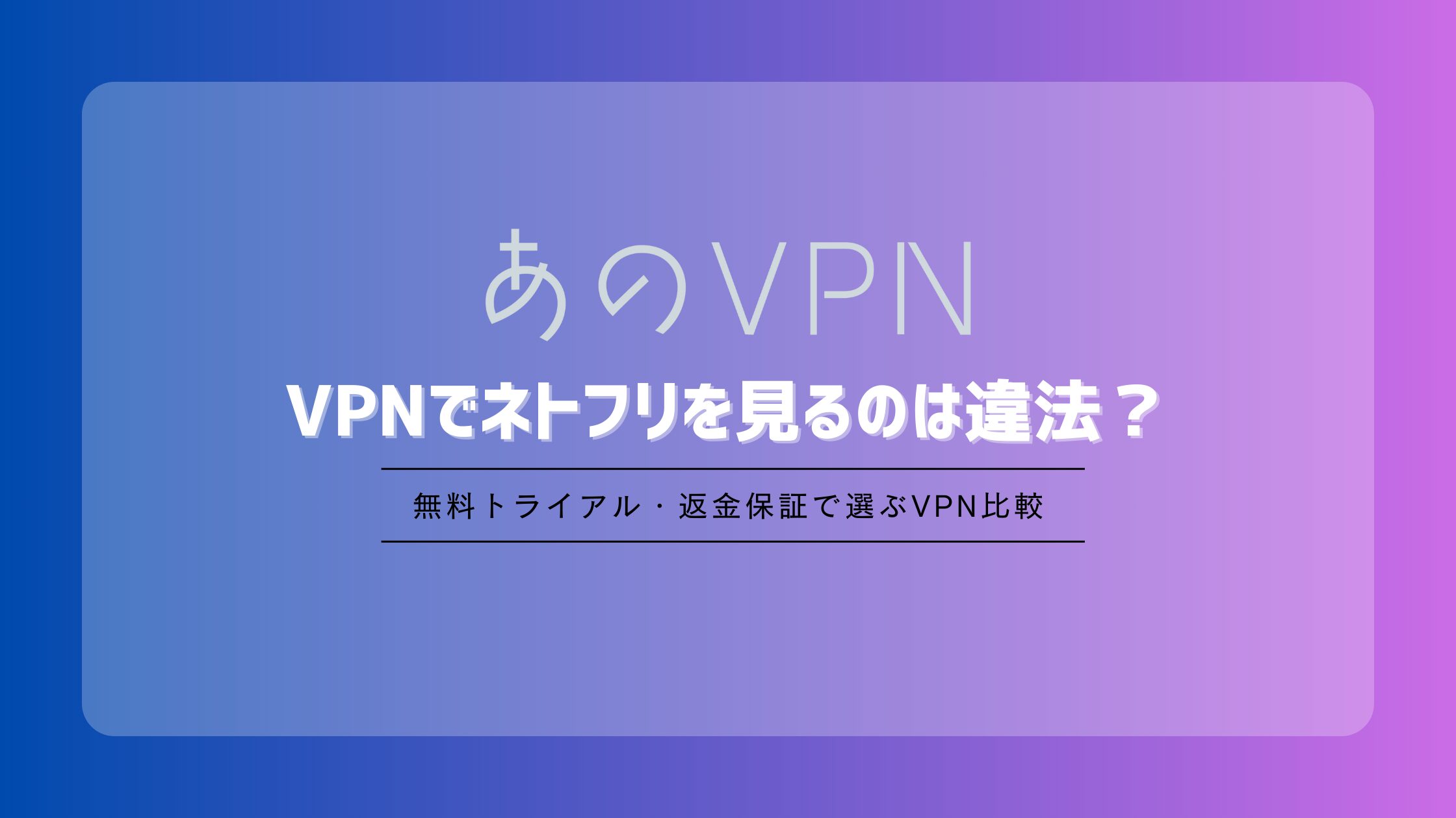- VPNでネトフリを見る行為が「違法かどうか」の整理